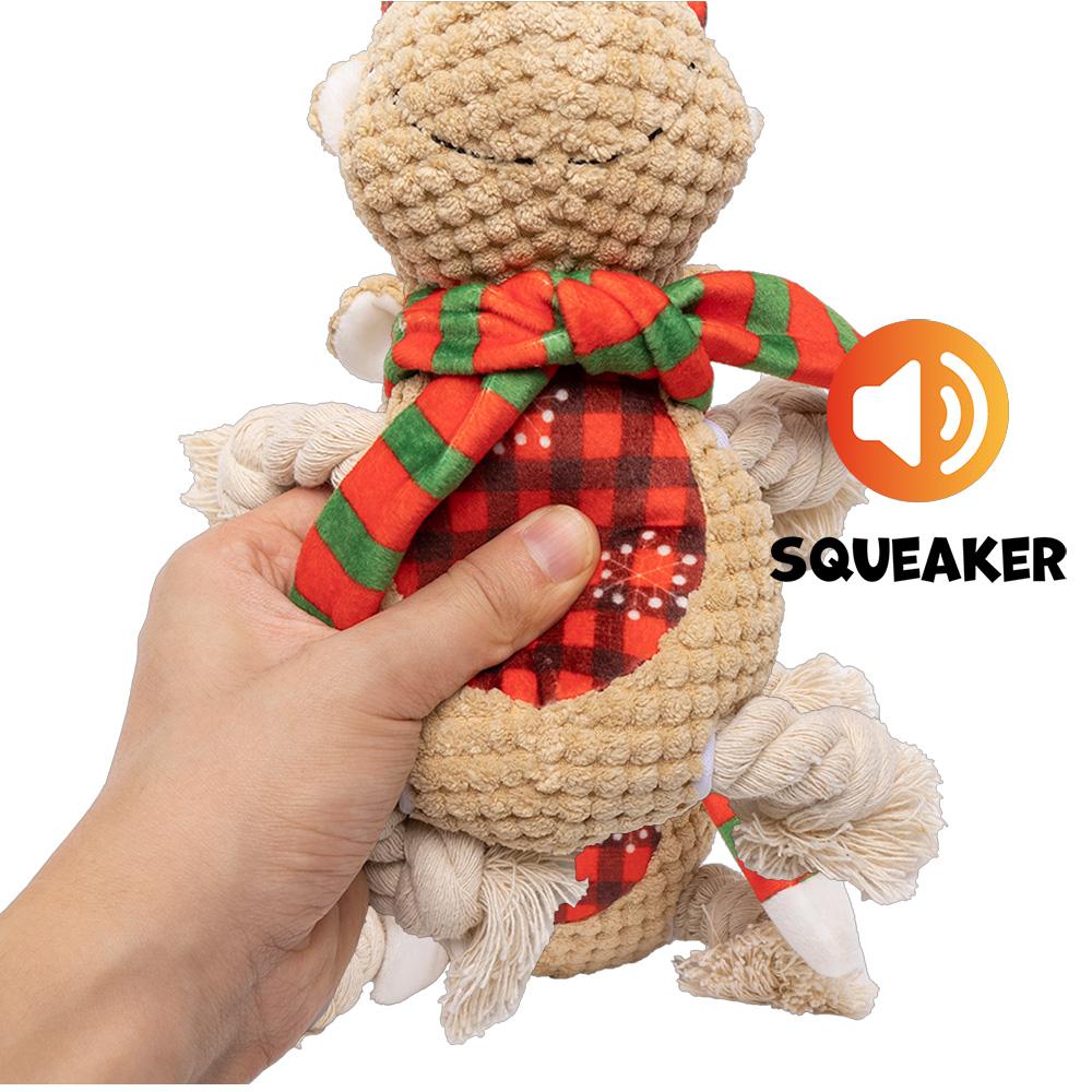 Božična plišasta igrača za pse, ki združuje mehkobo, več vgrajenih piskal in praznično vzdušje. Popolno darilo, ki vašemu psu pričara veselje in dolge ure igre.