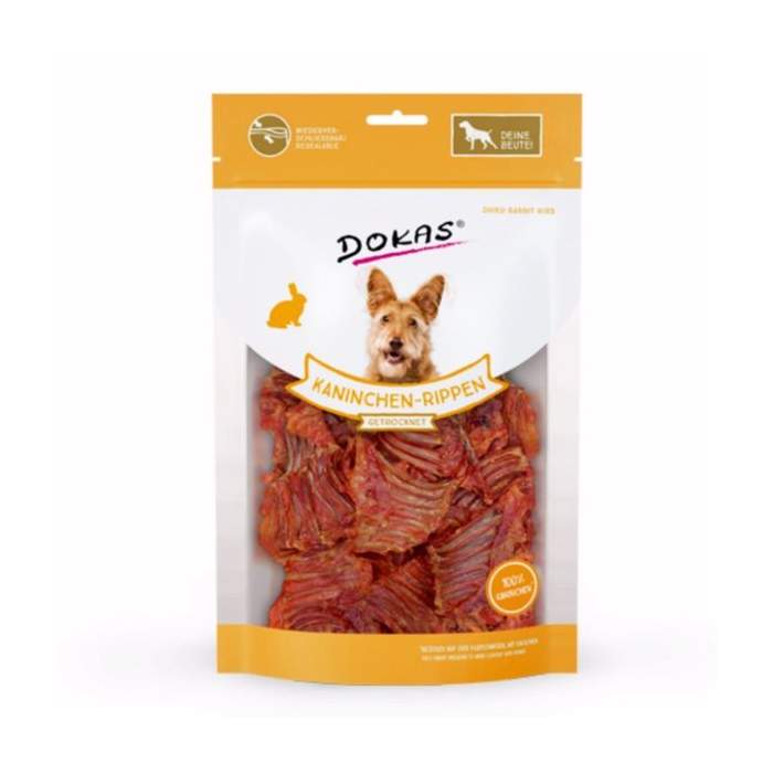 Dokas sušena kunčja rebra – naraven in hipoalargen priboljšek za pse.