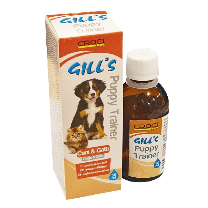 Gill’s Puppy Trainer sprej za mladičke je privlačna rešitev za privajanje mladičkov, odraslih psov in muc na opravljanje potrebe na za to določenem mestu.Poseben vonj proizvoda posebej privlači živali in jih privablja, da opravijo potrebo na tem mestu.
