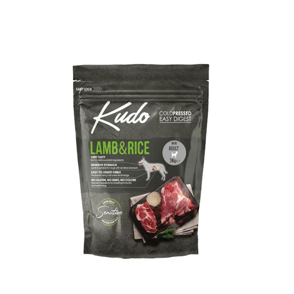 Kudo Lamb & Rice Mini Adult je popoln in naravno uravnotežen obrok za odrasle pse malih pasem, starejše od enega leta. Temelji na dehidriranem jagnječjem mesu (32 %), rižu, sladkem krompirju in izbranih zeliščih, ki skupaj poskrbijo za visoko hranilno vrednost in odlično prebavljivost.